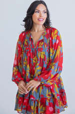 SNAKE GARDEN BLUE LONG SLEEVE MINI DRESS
