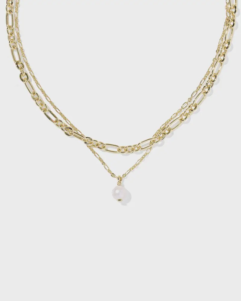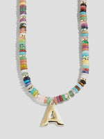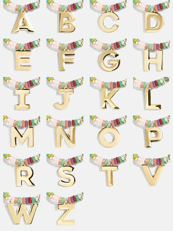 SEMI-PRECIOUS BLOCK INITIAL NECKLACE - MULTI/GOLD