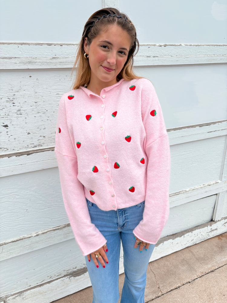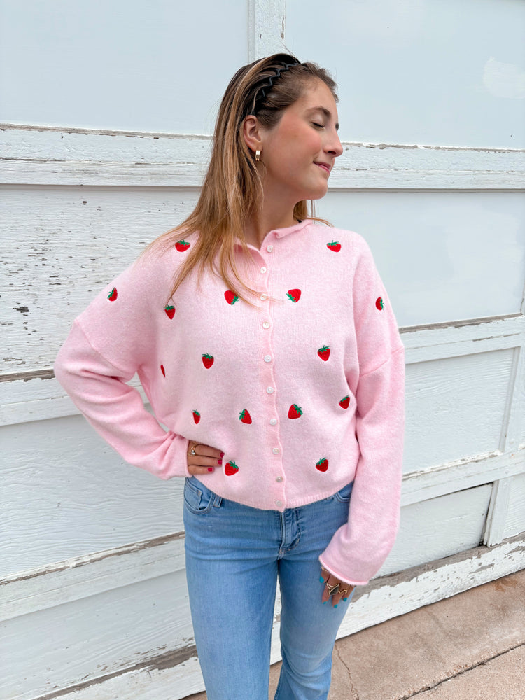 STRAWBERRY EMB PIPER CARDIGAN