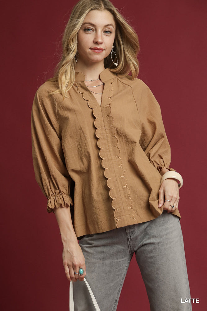 TEXTURED STRIPE SCALLOP TOP