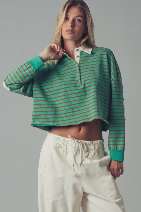 PLAYFUL CROPPED COTTON STRIPE TOP UDT0808PT