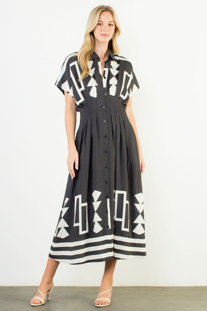 GEO PRINT MIDI DRESS
